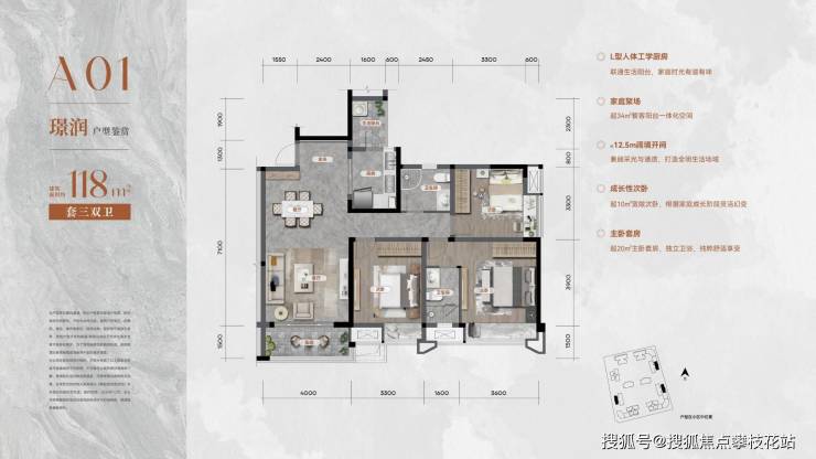 建面约118平套三
