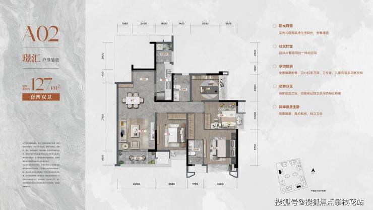 建面约127平套四
