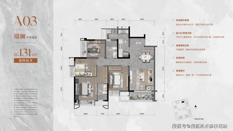 建面约131平套四