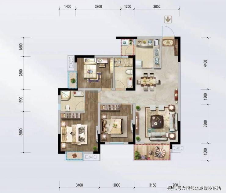 建面约106㎡,套三双卫