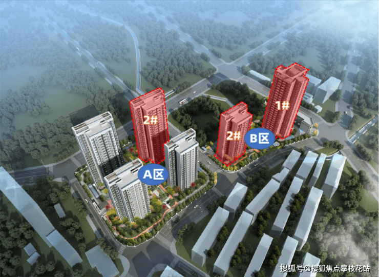 整个项目分A、B两区打造,其中A区规划有4栋住宅,均为2T4。A区2栋,B区1、2栋,总房源数326户,清水交付,建面约80-127㎡。