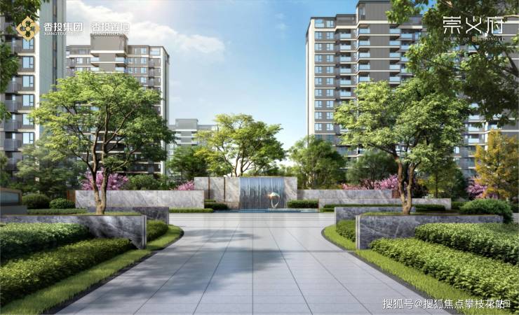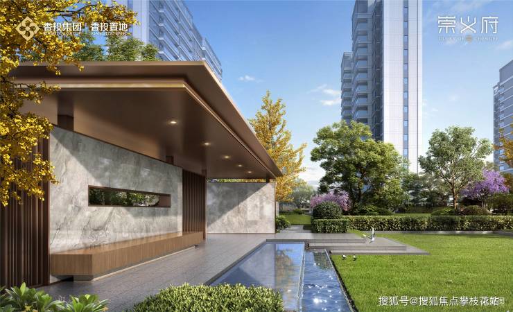 香投置地,2024年城市战略级大成之作一一崇义府,以60亩生动篇幅,萃集世界前沿设计思潮,新序城北纯粹洋房住区标准。
