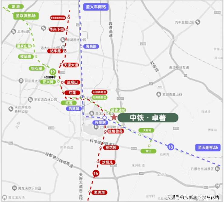 坐享地铁18号线/16号线(规划)/19号线(在建,预计年内开通)三线出行,一站通达天府CBD,一站直抵天府新站无缝对接双流机场、天府机场、火车南站及天府新站,享“空铁公”多式联运高效出行更有多种换乘方案通达春熙路、太古里、银泰中心等城市核芯商圈。