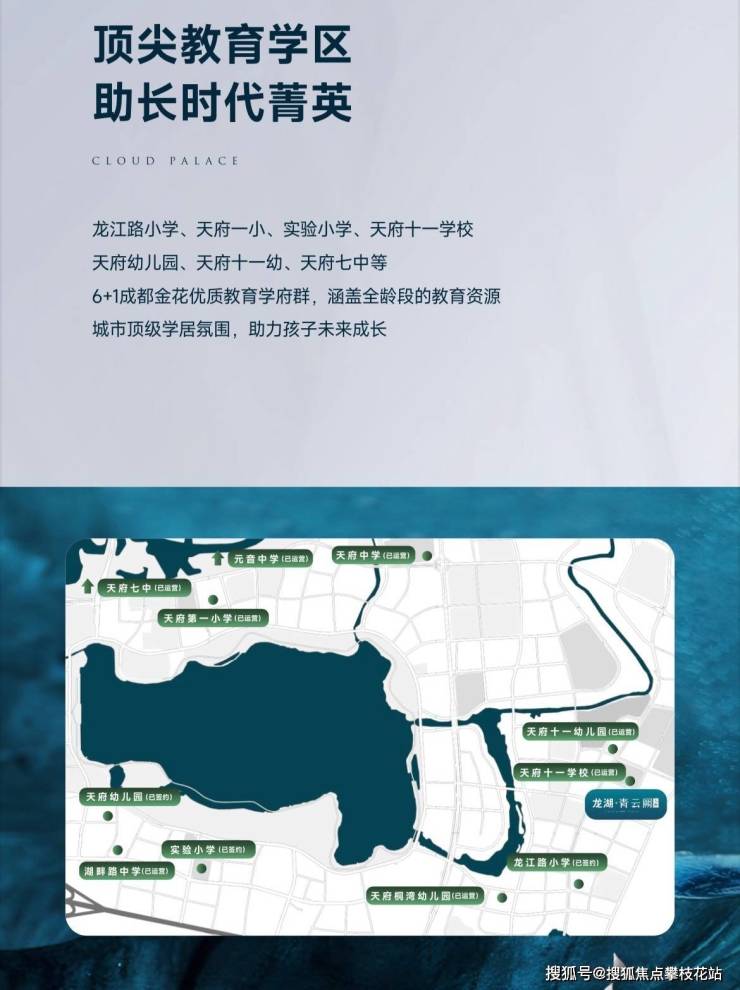 天府新区最强学区:小学E区、初中C学区。天府七中、天府中学、元音书院、龙江路小学、天府一小、实验小学、天府十一学校、天府幼儿园、湖畔路中学等6+1成都金花优质教育学府群,城市鼎级学居氛围,助力成长,光明未来。