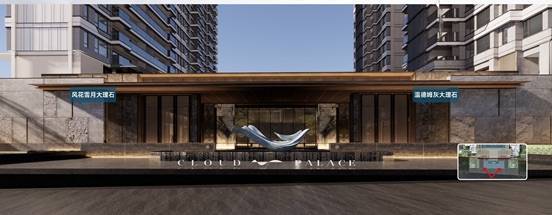 相映成彰的奢系迪奥香槟、爱马仕灰、古驰米白三色色调;折线元素造诣设计入户;东方典雅建筑风格筑就美学交响的青云之境。