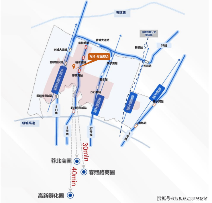市域铁路S11线:直线距离斑竹园站约1km,于2023年动工,建成后接驳成德立体交通体系。