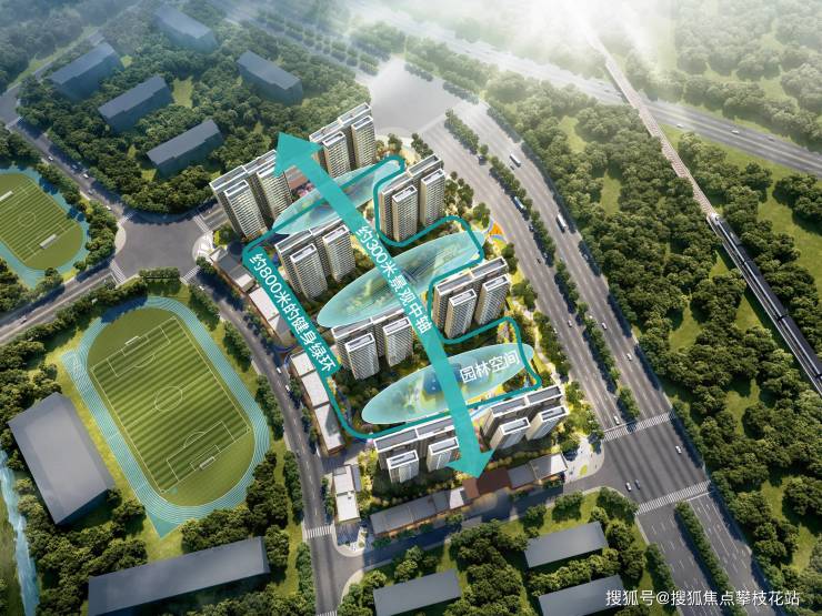 南北贯通的三中庭景观空间,园林景观是区域内同类型的项目2-3倍