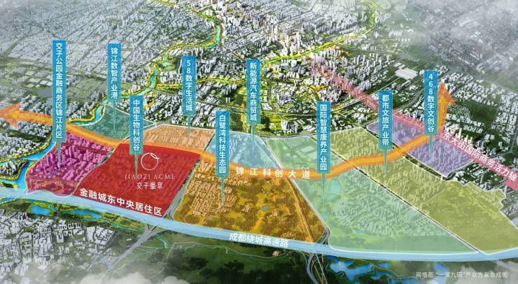 由锦江区和高新区联合擘画的世界级城市版图,以锦江大道为纽带的"一道九园"千亿产业持续落地,串联交子公园金融商务区、中国生物科创谷、白鹭湾科技生态园等9大智慧产业园区,引领聚集全国一流高端产业集群,以封面姿态,迈上时代舞台。