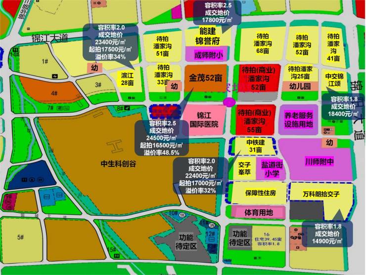 2024年金融城东中央居住区土拍就以楼面价24500元/㎡刷新区域和成都价格,强大的市场号召力,再次印证了金融城东中央居住区的超级价值。板块内部2024年及未来2-3年预计还将供应6宗住宅用地以及2宗商业用地,全城热望。