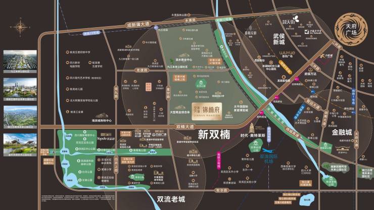 锦楠府位于成都新双楠板块,这是一个高端居住区域,与大源、新川同环域,距离武侯新城约5公里。