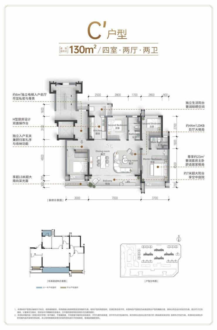 130户型:电梯双开独享入户,超大阳台观空中庭院