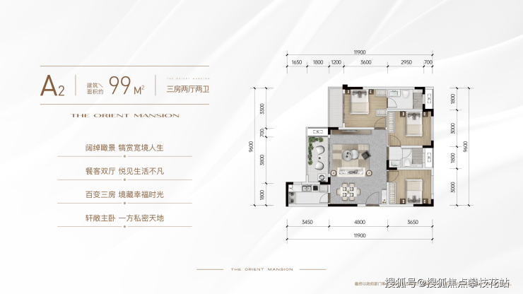建面约99平套三双卫