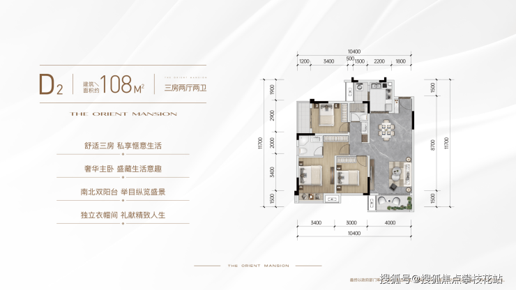 建面约108平套三双卫
