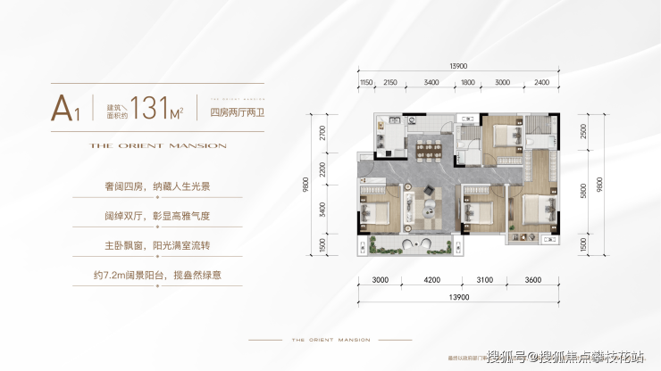 建面约131平套四双卫