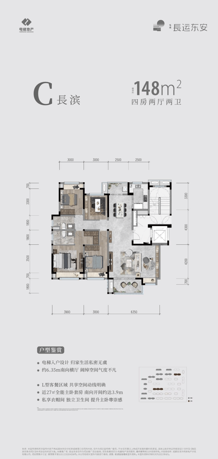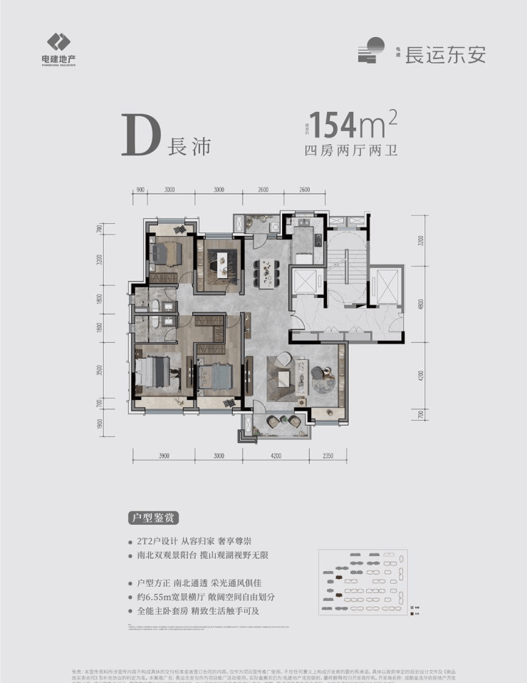 成都电建地产长运东安位于成都市龙泉驿区兴业大道,这一位置在龙泉驿区内被认为是较好的位置,具有较大的发展潜力。项目由33栋纯板式洋房和3栋小区外围独栋商业组成,提供130、148、154平方米等不同户型,以满足不同购房者的需求。