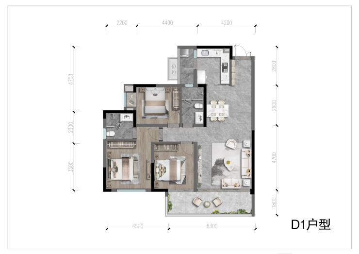 户型亮点:入户独立收纳,玄关独立收纳空间,专享归家仪式感;MAX奢阔横厅,极致构筑约44㎡的场景空间,约6.9米开间景观阳台,南北通透,塑造多重生活场景;L型厨房设计,巧妙布局,灵活动线,满足所有烟火想象;“主人翁”套房设计,约5.6米舒适进深尺度,独立主人衣帽间,尊崇起居体验