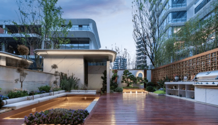 这样一来,地面入户花园具备了“空中花园”功能,能在会客、欢聚、BBQ等户外惬意场景中自然切换。