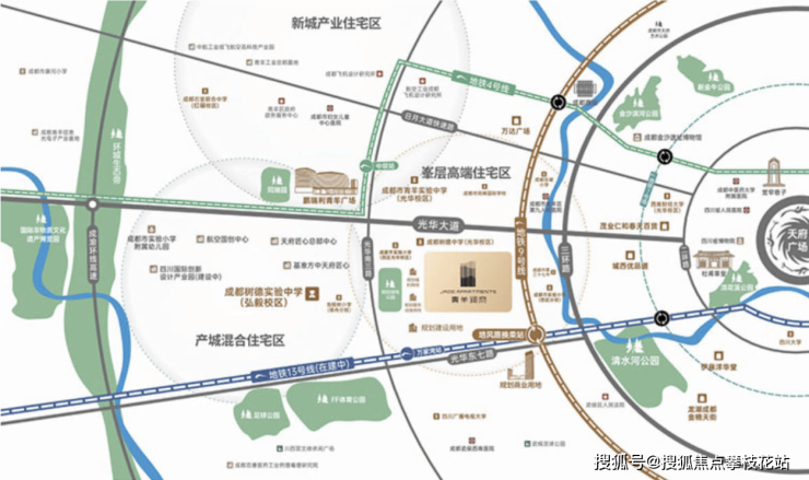 青羊润府位于成都市青羊区外光华区域,光华东五路(树德中学光华校区旁),地处城市发展的核心地带。项目周边交通网络发达,拥有“三横三纵三地铁”的城市立体交通网络。其中,日月大道、光华大道及光华8线构成横向交通要道,无缝接驳二环高架,直达市中心;三环、武青路和四环路则形成纵向交通动脉,连接城市各个区域。此外,项目紧邻地铁9号线和13号线的交汇站培风站,距离地铁站仅约400米,出行极为便利。
