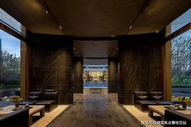 入户灵感来自香港半岛酒店,是内敛型、有多层次体验感的方式。