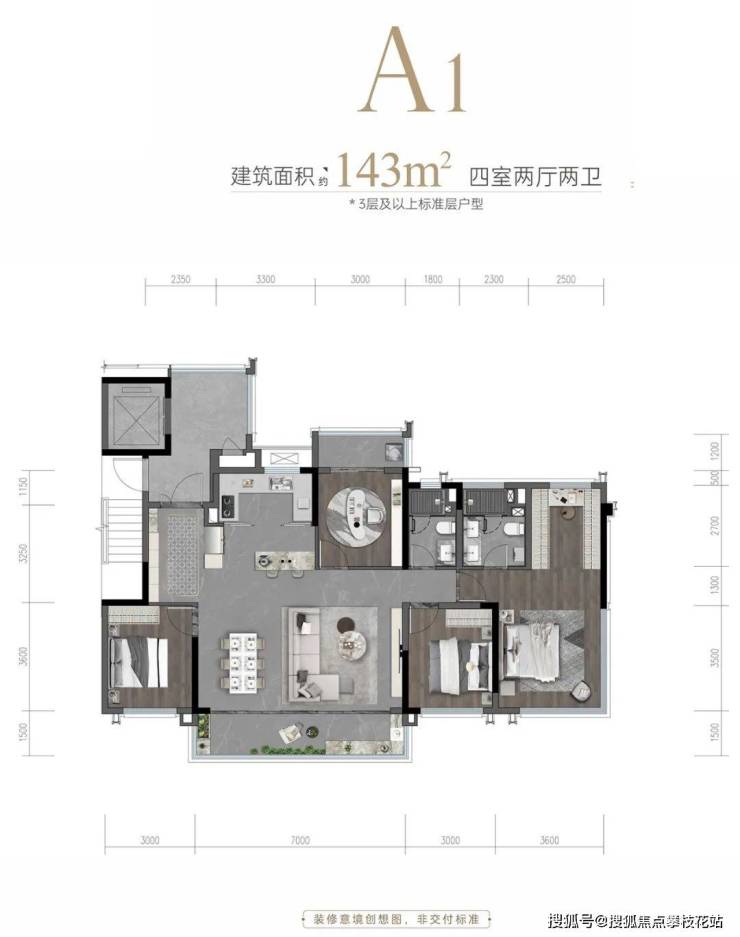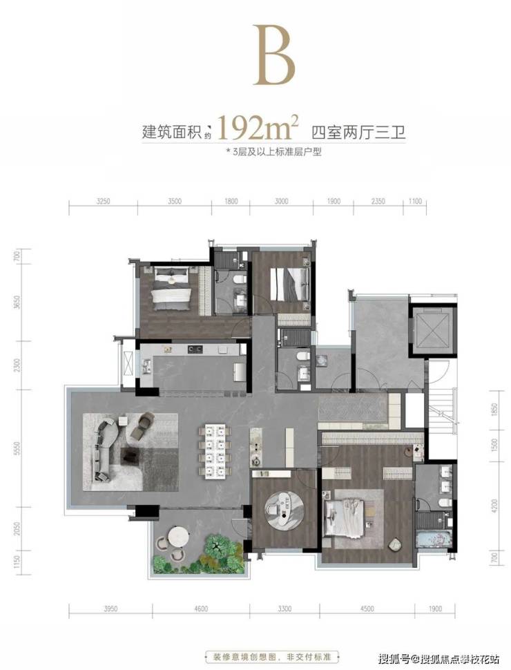 建面约192㎡套四双卫,城西首个别墅平层化、环幕全景舱超级大平层。