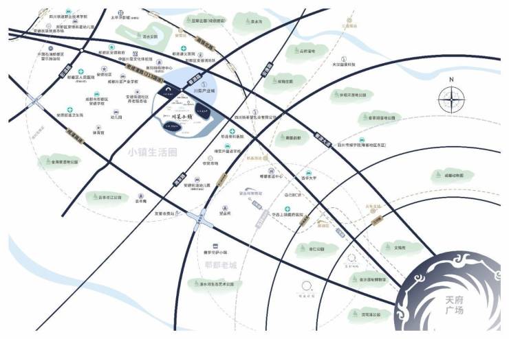 成都绿城春风里川菜小镇位于成都市郫都区,紧邻成灌公路、成灌高速与第二绕城高速,距成都天府广场35公里,属于成都市“半经济圈”范围。小镇总占地约10847亩,围绕“川菜文化”与“现代都市田园”两大IP,以“两轴、六心、六区”为总体规划,囊括小镇商街、中式产品、川西林盘、田园农场、主题民宿等多种业态。
