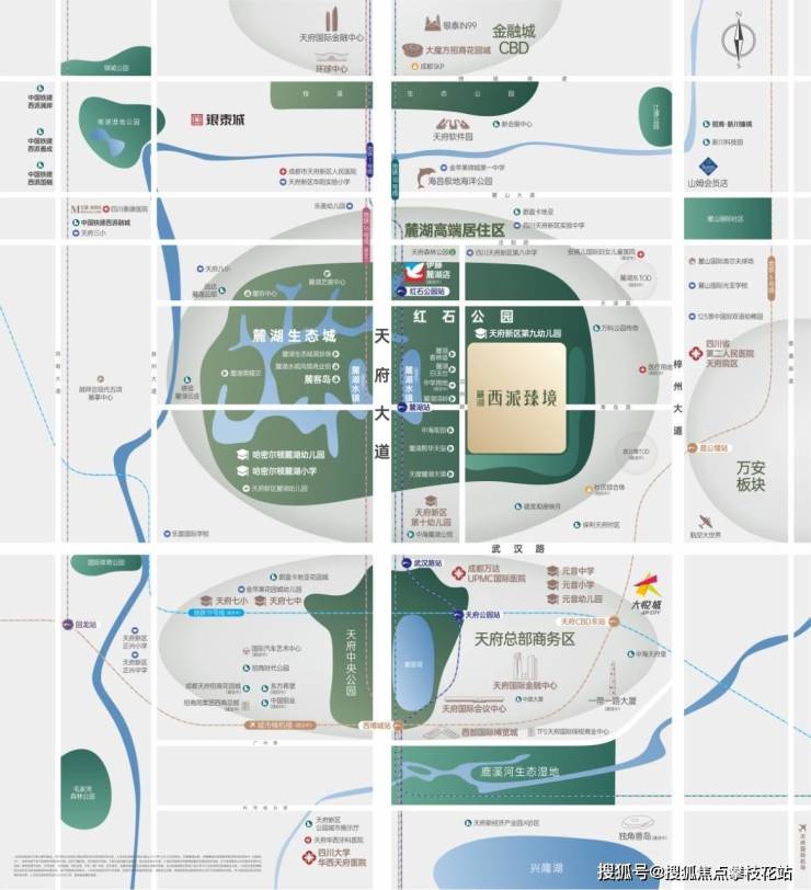 麓湖西派臻境位于天府新区汉州路与青岛路东段交汇处,毗邻成都市政务区和成都市金融中心,享有得天独厚的区位优势。项目周边不仅交通便利,紧邻地铁1号线麓湖站,距离多个大型交通站点也仅有几百米的距离,极大地方便了居民的出行。此外,项目周边还分布着多个大型购物中心、学校、医院等公共设施,生活便利度极高。