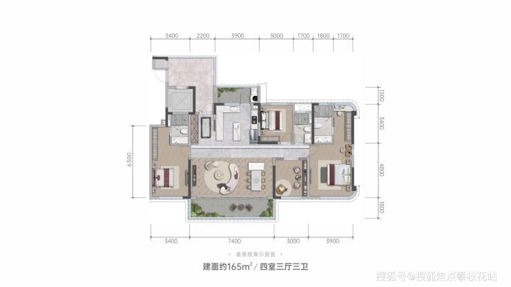 麓湖西派臻境的主力户型为四居室,面积区间约为165-218平方米,满足了不同家庭的需求。户型设计科学合理,采光、通风良好,动静分区明确,提升了居家生活的舒适度。例如,建面约165平方米的四室三厅三卫户型,拥有7米4面宽、4米8进深的大横厅,以及半开放式可封闭的厨房,空间宽大且布局合理。而建面约218平方米的户型,则拥有环幕视野和LDKB一体化空间,让居住者能够享受到更加奢华的居住体验。