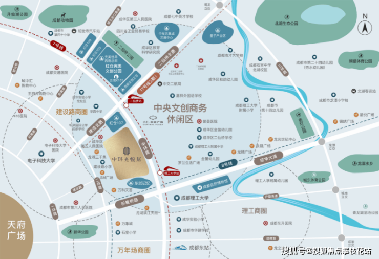近邻主城商圈 都荟繁华与建设路商圈、理工大商圈直线距离约1.5km,近享天荟·万科城市广场、东郊记忆、成都招商花园城购物中心、中铁建广场、SM广场、万象城业态繁华,近邻合信·K101文创综合体(建设中)。