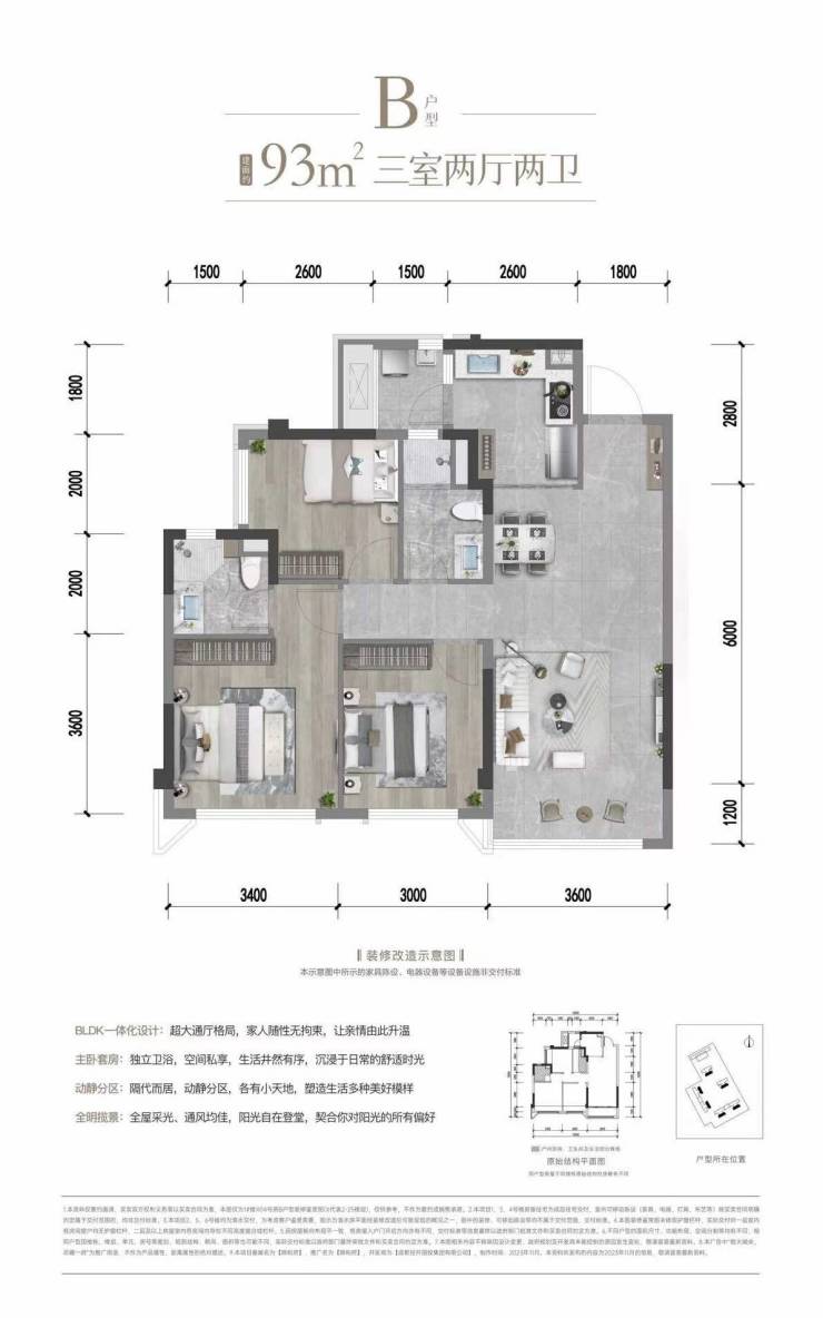 户型亮点:户型方正:对应国人讲究,方方正正,四平八稳;总价可控、性价比高,区域内低总价三房双卫户型,兼具功能性与性价比;动静分区,私密有度,尊重所有家人生活状态,互不干扰