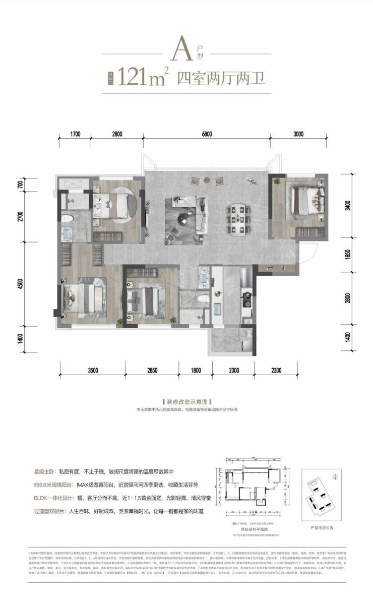 户型亮点:LDKB一体化客厅:约 6.8 米阔尺客厅开间,黄金面宽比例,最大限度让阳光清风自由入室;高利用率:在满足舒适的前提下,尽可能压缩过道等空间,使得可利用空间极限放大;纯板式,整体全明,清风自由穿堂,阳光肆意入室;总价可控、性价比高:区域内低总价的四房双卫。