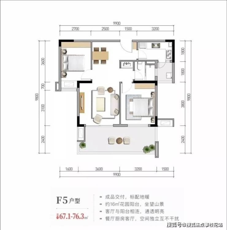 • 户型选择:51-100㎡多种选择(76㎡以上均配置观景阳台)