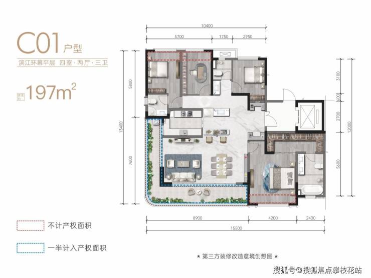 3. 双区会客空间:南北分区设置100-130㎡景观会客厅,配备高端休闲设施,满足品质社交需求