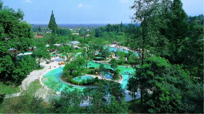 都江堰青城山温泉小镇:位于素有“青城天下幽”美誉,世界文化遗产地、国家5A级风景区的青城山山脚。攫取青城山地层深处优质矿泉,以奥运水立方选用的高纯度水过滤技术,打造60余亩全生态有水休闲、养生为一体的休闲养生大型温泉。