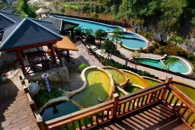 达州鑫达养身谷温泉:鑫达国际养生森林温泉坐落于四川省达州市万源市旧院镇龙潭河风景名胜区,是川东少有以峡谷高山流水,打造的养老、养生、休闲旅游的森林温泉康养度假胜地。天然温泉有30多种微量元素,每天出水量可达2100方,是PH值7.07属中性硒锶类型医疗热矿泉。