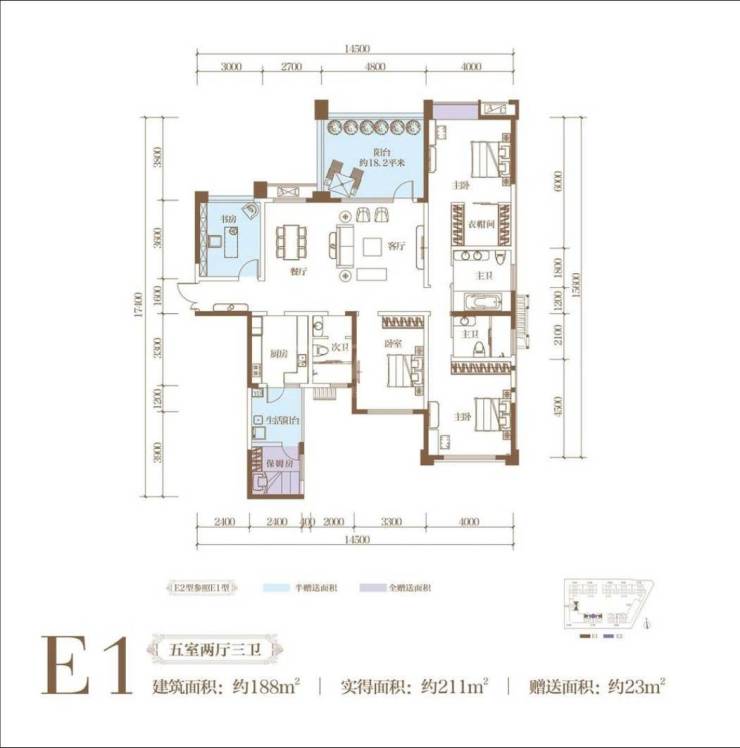面积185平米 套四三卫 南北(东北)看公园看江