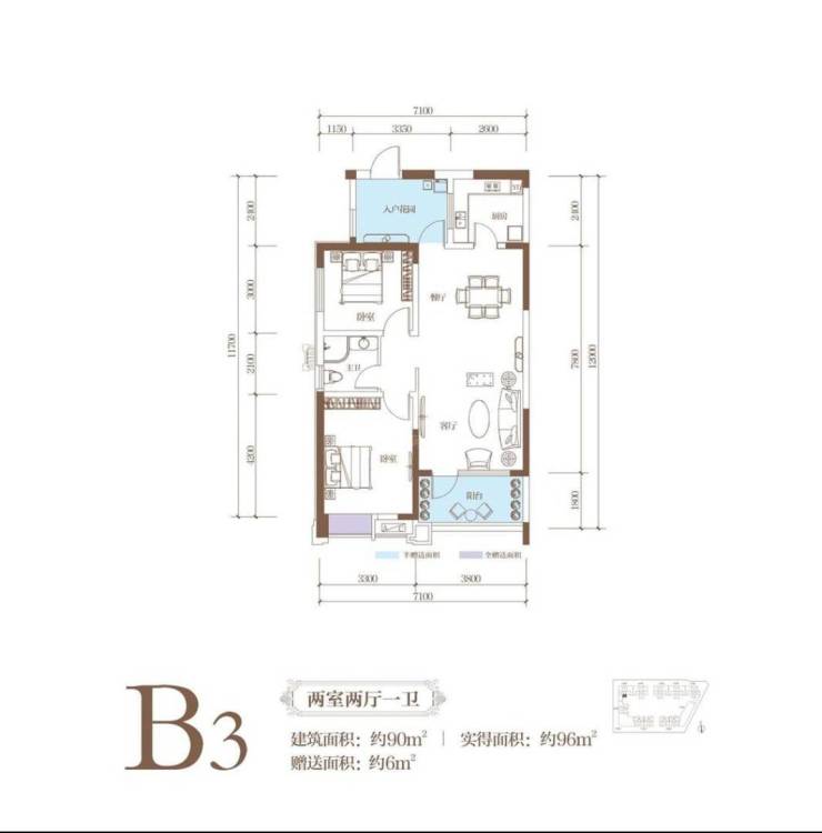 92平米宽敞套二单卫,生活阳台有改动