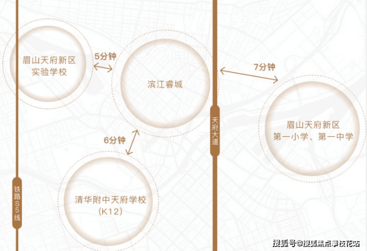 视高小学、视高中学、眉山天府新区第一小学、第一中学、眉山天府新区天府学校、清华附中天府学校(学校小学部、初中部已于2023年9月1日正式开学,高中部将于2024年9月开学。)、眉山天府新区实验学校、四川科技职业技术学院等院校,从幼儿园到大学全龄教育配套。