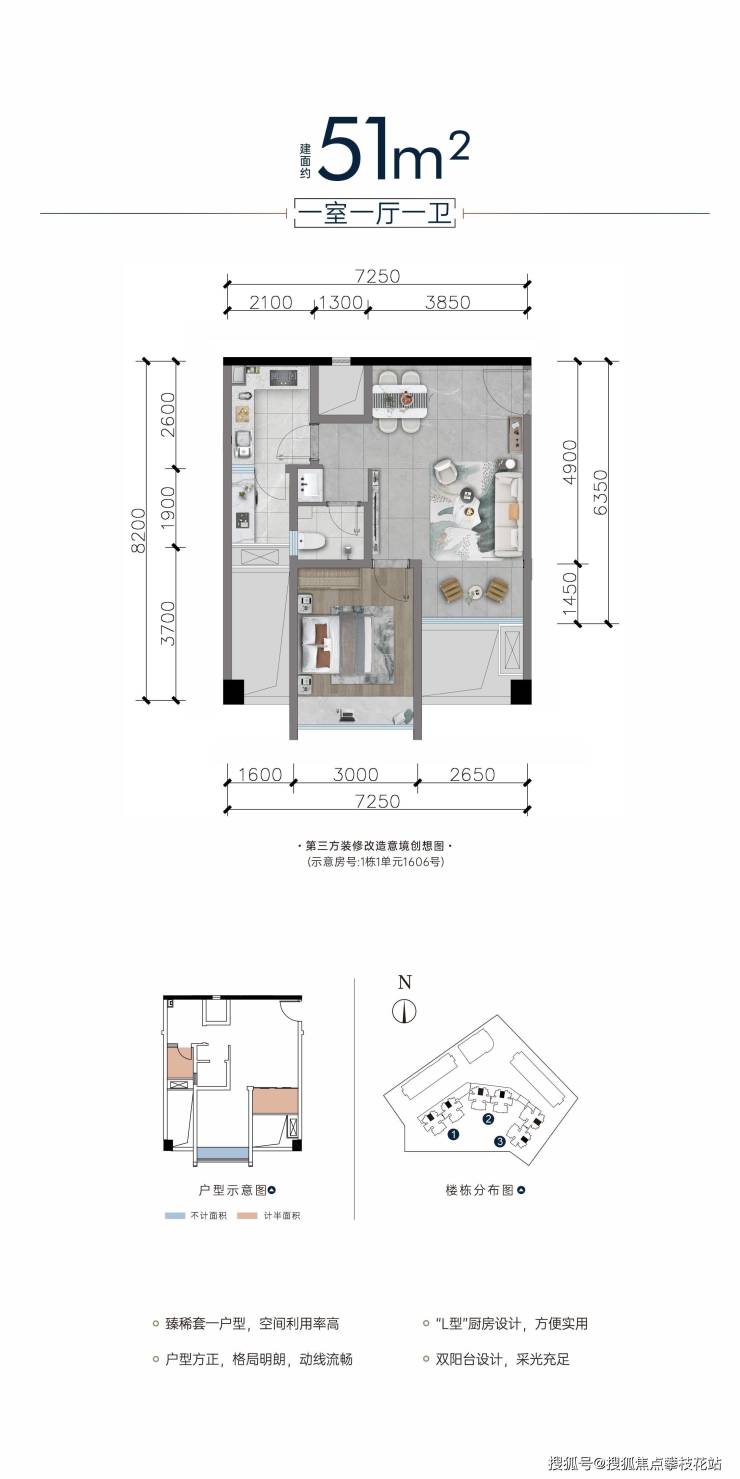 建面约51平套一