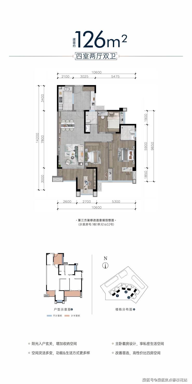 建面约126平套四