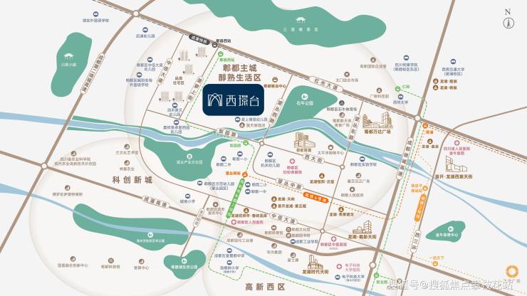 城市枢纽—地铁6号线望丛祠站距离项目约1.5公里、毗邻高铁郫都西站、有轨电车蓉2号线,可快速通达全城