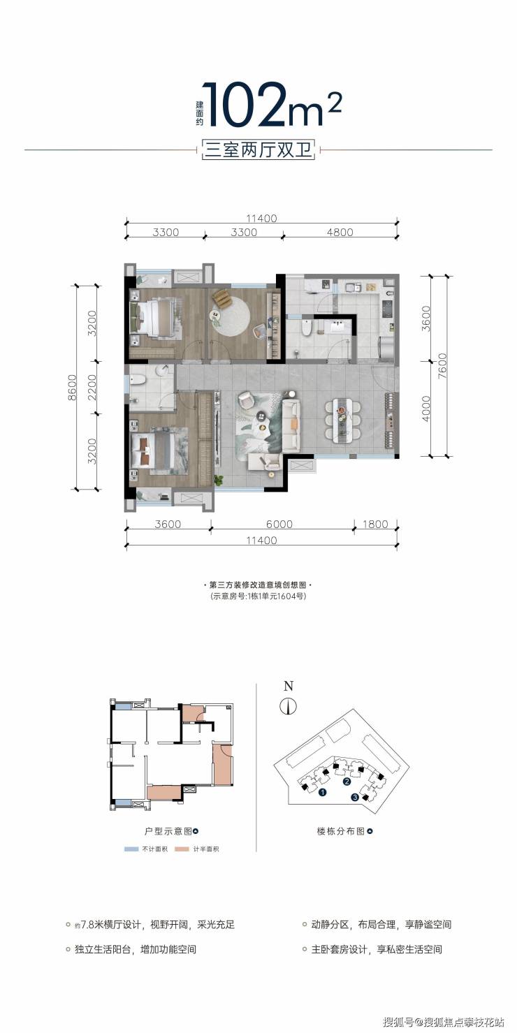 建面约102平套三