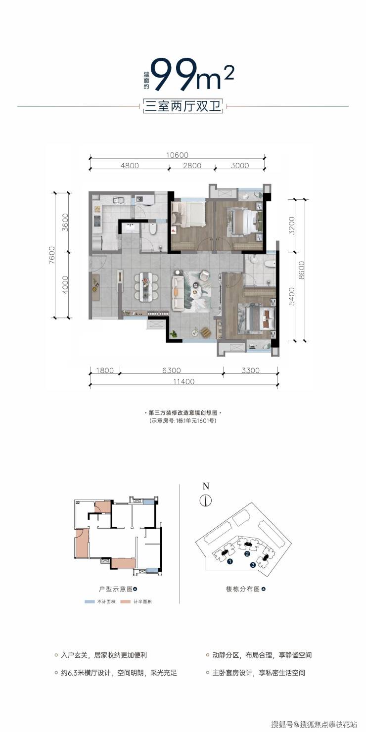 建面约99平套三