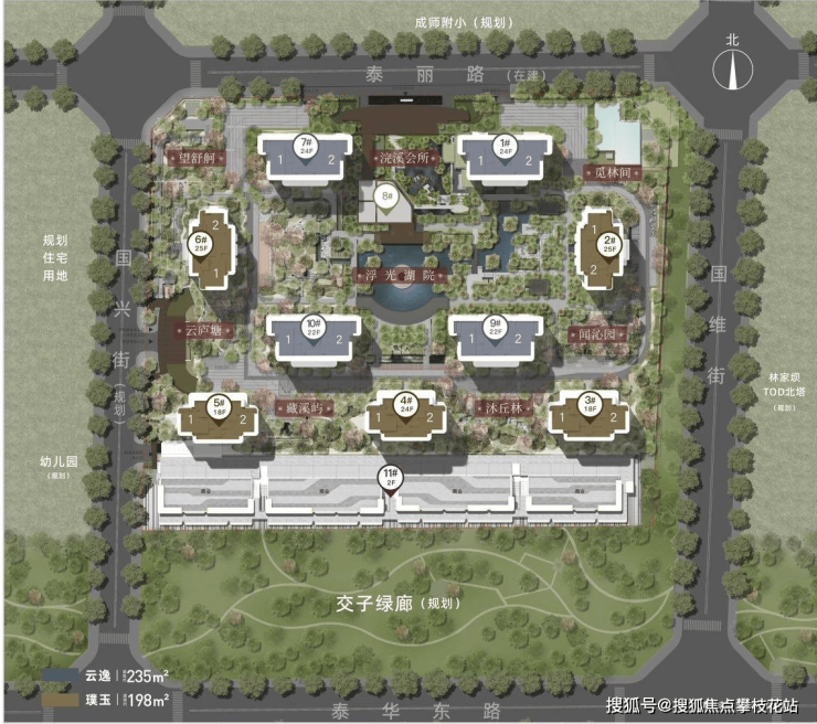 封面级建筑:提取东方古典建筑美学,银灰色LOW-E玻璃如瀑布倾泻,以黄金腰线点缀,塑造屹立东方韵艺术坐标。
