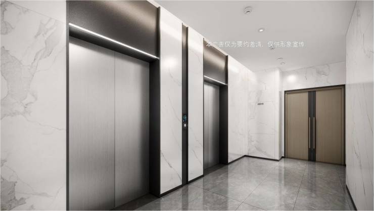 5.4米高、10米宽、150平米,现代风格精装入户大堂,从生活体验出发,彰显项目高品尺度,步步享受尊崇归家仪式感。