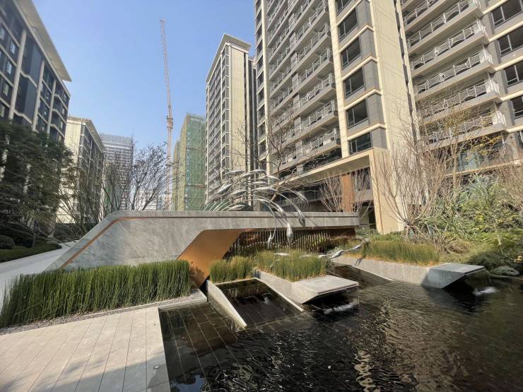 约200米艺术水线花园 提取水的蜿蜒肌理,宛若流水的曲线布局创造中庭水线花园。