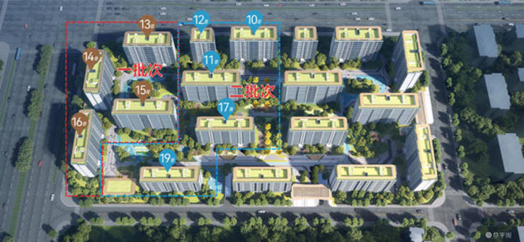 约2.0容积率,低密纯洋房住区,围合+行列式布局