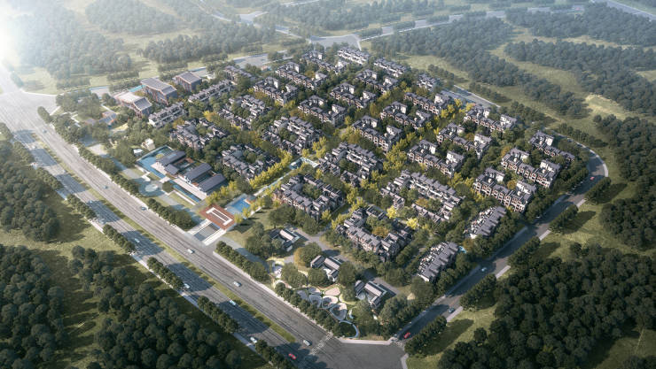 3.约173亩低密院墅,总建筑面积约18.4万㎡,容积率0.88。
